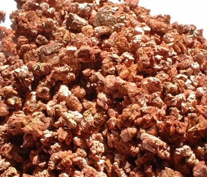 金黃色膨脹蛭石,是層狀結(jié)構(gòu),層間含有結(jié)晶水,膨脹率在5-25倍,熱導(dǎo)率小,容重在50-200kg/m3,是良好的隔熱材料。質(zhì)量良好的膨脹蛭石,最高使用溫度可達(dá)1100℃。此外,膨脹蛭石具有良好的電絕緣性。